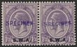 1927-30 'S.W.A.' opt KGV 1/3 pale violet, horiz pr, h/s SPECIMEN. VF fresh MLH. Scott 94(2). SG 56s cat £150. (P)