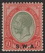 1927-30 'S.W.A.' opt KGV £1 pale olive-green & red. VF fresh MLH. Scott 95 cat US$100. SG 57 cat £130. (P)