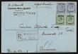 1924 Registered cover franked setting I opt bilingual pr of ½d litho opt & setting III 3d split pr, tied by 'Windhoek 15 12 24' cds. To Germany with Hannover arrival b/s. SG 1d & 19 cat £68 as loose stamps & 'from x6' on cover. (P)