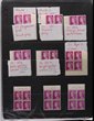 1966-71 QEII 7c purple specialised MUH collection (850) with shades inc bright lilac 'dry ink' upper marginal blk of 4 (cat $600), papers inc non-Helecon UR cnr blk of 9 (ACSC 447 af cat $75 ea, $675). Perforation varieties inc left marginal blk of 4 with extra stamp size perfs plus upper marginal single with double perfs (cat $75). Perf-pip multiples inc Sheet E LR cnr blk of 16 with type 1 perf pip. Smudged ink variety in left marginal strip of 7. Constant plate varieties inc Sheet A 'line through top pearl' (Pos 1/2) in strip of 6 & blk of 12. Sheet B lower panes of 50 (3) with range of unlisted constant varieties. Sheet C 'retouched LL cnr' (Pos 6/4) right marginal blk of 8. Sheet D 'weakness to left eyebrow' (8/10) LR cnr blk of 6 & upper pane of 50 with 'shading breaks in Queen's neck at right' (Pos 2/2). Sheet E positional multiples in LL cnr blk of 24 & upper pane of 60. Sheet F 'retouched LR cnr' (Pos 8/6) LL cnr blk of 4. Some blks still adhering to page fragments o/w fresh MUH. ACSC cat $1950. (850) |