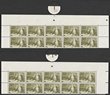 1977 QEII Silver Jubilee 18c & 45c multiples with 45c imperf plate proof intersheet blk of 8 with colour bars (unisssued combination), plua 18c QEII imperf blk of 8 from "heart of sheet" with horiz colour bars (the vert gutter prs also do not exit on the issued sheets).. F-VF MUH, a few blemishes. SG 645-46(var). ACSC 765b/ba & 766PP(1) est cat $4000+++. Unique positional multiples. (16) (P) |
