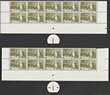 1966 Navigators 75c James Cook Plate Number '1' without dashes top centre blk of 10 & Plate Number '1' with dashes top centre blk of 10. Fresh VF MUH. SG 400(var). ACSC 462z & zb cat $650. Very fine position pieces showing retouches. (20). |