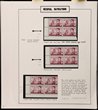 1966 Navigator $1 Flinders large collection on pages, mainly in strips, blks up to 10. Range of shades & papers inc pink-maroon (not listed by ACSC), extensive positional pieces with duplicated major varieties inc 'diagonal scratches over USTR' (ACSC 483d), 'left frame missing for 4.5mm retouches' (483e & ea), 'LF missing for 3mm at top & various retouches' (483f & fc), extensive 'recut between sails & eye' & St II with plate fractures (3). Interesting ink stripping on St II plate fracture which is not listed by ACSC. Plate 3 top & bottom centre blks. Fresh VF MUH. SG 401(var). ACSC 463(var) cat $3000+. (175) |