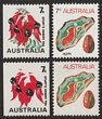 1971 Floral coil 7c Sturt's Desert Pea error green leaves OMITTED, plus buff shadows. Gemstones 7c Agate with black 'Agate' & 7c OMITTED. Plus normals to compare. VF fresh MUH. SG 468bc & 550a cat £175. ACSC 535cg & 642c cat $180. (2). (P) |