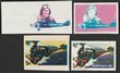 1978 Aviators 18c Kingsford Smith imperf plate proof singles of Cyan plates with magenta background (ACSC 792 PP(1) magenta 8 Cyan plates (ACSC 792 PP(2). Also 1879 Locomotives 50c imperf undenominated essay similar to 50c design with diagonal line LL cnr (846E(1)A) with normal for comparison. F-VF aviators with slight imperfections as usual. SG 600(var). ACSC 792PP (1)(2) cat $500. Interesting group. (4). (P) |