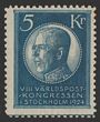 1924 UPU Congress 5Kr blue King. VF fresh MUH. Fa 210 cat 4500Kr. SG 160 cat £375 M, should be at least double, £750 MUH. (P) |
