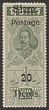 1907 'Siam Postage 20 Ticals' opt Rama V 20T olive-green. VF fresh MLH appearance (but expertly regummed). Scott 107 cat US$6750. SG 107 cat £7000. Very rare genuine unused & certificate can be obtained on request. (P) |