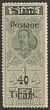 1907 'Siam Postage 40 Ticals' opt Rama V 40T olive-green. VF fresh MLH appearance (but expertly regummed). Scott 108 cat US$5100. SG 108 cat £5500. Very rare genuine & certificate can be obtained on request. (P) |