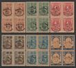1920 2nd Tiger Scouts Fund opt set 2s-1T all blks of 4, inc with control cachets on backs of 3s, 5s, 10s, 15s. F-VF, 2s-15s MUH & 1T M, mostly evenly tropicalised. Scott B18-B23 cat US$2400++. SG 205-10 cat £2900++ both as M singles, should be at least double, for such mostly MUH blks, so est £5800. Only 3000 sets printed & extremely rare in multiples. Certificates for top values can be obtained on request. (24) (P) |