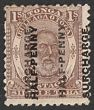 1895 'SURCHARGE 7½d' opt King 2½d vermilion, variety 'stop after POSTAGE'. VF fresh M, ink marks at UR. Scott 35a cat US$180. SG 31d cat £225. |