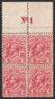 1913 KGV Engraved 1d pale red, plate no 1 & part imprint blk of 4. Fresh F-VF MUH. SG 17(var). ACSC 59A(1)z cat $525 for blk of 8 M. (4)