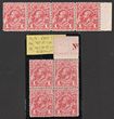 1913 Engraved 1d red KGV Plate 1 blk of 4 positions 1/4-5, 1/14-15 with variety SG 17(var), ACSC 59(1)h retouch upper RF & positional marginal strip of 4 1/87-90. VF fresh MUH. ACSC cat variety M $60, should be double MUH $120, with other stamps total cat $330. (8)