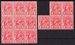 1932 Kookaburra 6d red brown Ash imprint blks of 4, plates 1 & 2. 1st VF MLH/2MUH & 2nd VF MUH. SG 146(var) £160 for M singles, should be at least double, £320 for these. ACSC 160z & 160za cat $365. (8). (P)