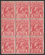 1913 Engraved 1d Red KGV blk of 5 & 9 not plated but believed to be from Plate 3 or 4. Fresh VF MUH. SG 17(var), ACSC cat $180. (14).