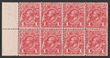 1913 Engraved 1d red KGV rose red Plate 1 left marg blk of 8. Plated as 1/21-24 & 1/31-34 with variety ACSC 59(1)m retouch. Also shows partial kiss print between the row. Kiss print ACSC 59ca cat M &$1250 per stamp. SG 17(var), ACSC 59(1)Bm. (8) (P)