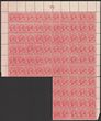 1913 Engraved 1d carmine red KGV (plate2) imprint blk of 36 bottom of sheet ACSC 59(2)za. Also double perf between columns 7 & 8, most obvious in top 4 rows, ACSC 59c(bi) rows 7-12, pos 3-8. Inc listed varieties ACSC 59(2)qst. rare multiple with both double perfs & imprint. Some separation, mostly F-VF M/MUH, does have 6 tone spots & a crease through the top row & re-enforced perfs on 8 stamps, not effecting the variety. ACSC 59c(bi) cat $1700+. Despite flts an impressive multiple. (36)