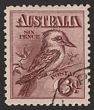 1914 Kookaburra 6d reddish-maroon. VF fresh MUH. SG 19 cat £75 for M, should be at least double £150 MUH. ACSC 60B cat $275.