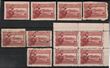 1934 Victorian Centenary2d very pale terra-cotta, perf 10½ (ACSC 151B) Ash imprint blk of 8 & normal vermilion Ash imprint blk of 4 (MUH) for comparison, both on Wiggins Teape paper. Fresh VF 3 MUH/5 MLH & 3 MUH/1 MLH. SG 147(var). ACSC 151za & 151Bza cat $2350 as singles plus substantial premium for imprint & other WT imprint. The pale terra-cotta shade is rare & not listed as an Ash imprint blk. (12) (P)