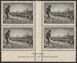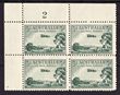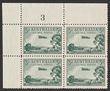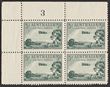 1934 VictorianCentenary 3d blue perf 10½ on thinner Cowan paper, Ash imprint blk of 4, LL stamp with variety 'flag on tower nearest native's hand' (pos L 40). VF fresh MUH. ACSC 152 za cat $275.
