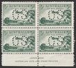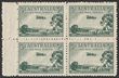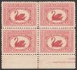 1932 Lyrebird 1/- green Plate 1 dot blk of 4 in right selvedge. This is a new discovery. A plate dot in the left margin is recorded. ACSC notes 'no other Plate dots have every been reported, so the Plates must have been differentiated by markings - trimmed off?' Fresh VF 2MUH, 2MLH. SG 140(var). ACSC 145z cat $1750. Very rare. (4). (P)