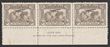 1931 Airmail 6d dull brown Plate 2 imprint strip of 3, centre stamp with variety 're-entry to STRALI' (pos 2/38). VF MLH/MUH. SG 139. ACSC 144 A ze cat $350 x .6 = $210 for strip of 3.