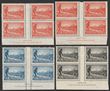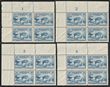 1932 Bridge 3d Blue plate no1-4 blks of 4 complete set. F-VF MUH, no 1, hinged in margin. SG 142(var). ACSC 147z-zc cat $230. (16).