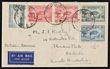 1932 Bridge set 2d (both) to 5/- (+3d green Airmail) tied by 'Pt Pirie SA 31 MY 35' cds. By air to Adelaide with 31 MY 35 arrival b/s. SG 141-44 cat £225+ ACSC 146-49 cat $418 - both as loose stamps. The 5/- cat $3500 on commercial period cover. Unusual & rare franking combination. (P)