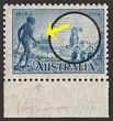 1934 Victorian Centenary 3d blue bottom marginal single with variety 'flag right of tower nearest natives hand'. Fresh VF MUH. SG 148aa cat £65 = A$130. ACSC 152d cat $100.
