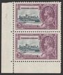 1935 KGV Silver Jubilee 24c slate & purple LL cnr marginal vert pr, top stamp extra flagstaff variety. VF fresh MLH/MUH. SG 242/242a cat £194 as singles, plus premium for positional setenant pr which should be +50% so est cat £290. (P) |