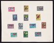 1963 Resettlement opt QEII set 1d to 10/-, ea locally h/s small SPECIMEN 10x1¼mm & affixed to a PO display card 255x125mm. VF M/UN. SG 55-67(s). Ex Tristan PO display & believed UNIQUE. 2016 Ceremuga photo cert. (P) |