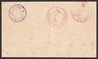1928-29 proof cachet strikes on blank cover with 2 red strikes of type IVa with 'ISLAND OF' in middle, plus perfect violet strike of cachet Va with inner circle comp & letters 'T', 'C' & 'N' damaged. Cover with tropical spots & sl central fold, away from pmks. SG C5 & C7 would cat £5500 (x 2!) & £6500 on separate covers. Remarkable combination of the 2 rarest Tristan cachet types. 2024 Ceremuga photo cert. (P) |