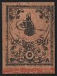1863 Tughra Postage Due 5Pi black on brown-red, with red band instead of blue. Superb fresh M, 4 large even margins. Scott J4c, Mi P4c, SG D10(var) cat £2,500+ normal & at least double, for incorrect band colour, so £5000+. Classic rarity. 2010 Ceremuga photo cert. (P) |