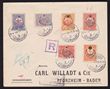 1916 Registered cover franked National Fete opt set 10pa-2½Pi, plus an opt 2Pi, tied by 'Voivoda (Galata) 27 7 16' cds. SG 759-63. |