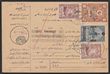 1922 Parcel Card franked Nationalist Govt 'Osmanli Postalari 1336' opt Religious Tribunal fiscal 50Pi, plus '1337' opts on Ministry of Finance 5Pi (4) & 4 Ottoman stamps -some cut as per PO rules, tied by 'Moudourna 2 5 22' cds, with indistinct arrival b/s. Mi 712 & 752, SG A19 & A74. Rare mixed franking. (P) |