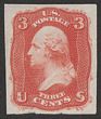 1857-61 Washington 3c scarlet, 'Premiere Gravure' essay of the 1861 issue, plate proof on India paper, imperf. Superb UN as made, 4 margins. Sc 65-E15f cat US$350. Rare. (P) |