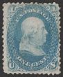 1861-62 Franklin 1c blue. F-VF UN, few nibbed perfs. Scott 63 cat US$100 for UN. (US $275 for M). SG 60 cat £300. |