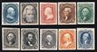 1873 Official Treasury set 1c-90c brown, plate proofs on card, imperf, in issued colours. Superb UN as made, all 4 margins. SG O250-O260(p) cat £2750 as normals. Sc O72P4-O82P4 cat US$115 (normals cat US$3215). (4) (P) |