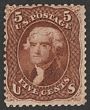 1861-66 Jefferson 5c brown. F-VF fresh M, nice deep colour. Scott 76 cat US$1400. SG 72 cat £1500. (P) |