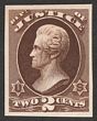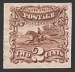 1873 Official Justice 2c brown trial colour proof on thin card, imperf, instead of purple issued colour, for Atlanta Exhibition. VF UN as made, 4 margins. SG O205(p) cat £300 as normal. Sc O26TC4c cat US$37 (normal cat US$310). |