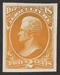 1873 Official Agriculture 2c yellow plate proof on India paper, imperf, in issued colour. Superb UN as made, 4 margins. SG O181(p) cat £250 as normal. Sc O2P3 cat US$20 (normal cat US$275). |