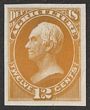 1873 Official Agriculture 12c yellow plate proof on India paper, imperf, in issued colour. Superb UN as made, all 4 margins. SG O185(p) cat £450 as normal. Sc06P3 cat US$20 (normal cat US$450). |