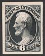 1873 Official Interior 6c black, trial colour proof on thin card, instead of vermilion issued colour, for Atlanta Exhibition. Superb UN as made, 4 margins. SG 197(p) cat £70 as normal. Sc O18TC4a cat US$55 (normal cat US$70. |