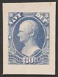 1873 Official Navy Dept 30c ultramarine large DIE PROOF on India on card (25x34mm), in issued colour. VF UN as made, 4 reduced margins. SG O223(p) cat £325 as normal. Sc O44P1 cat US$80 (normal cat US$350). |