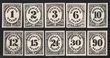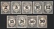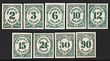 1873 Official Justice set 1c-90c purple, large DIE PROOFS on India paper on card (145x210mm), in issued colour. VF UN as made, some aging on edge but sunken area very nice. SG O204-13(p) cat £6000 as normals. Sc O25-34P1 cat US$800 (normal cat US$6690). Rare proof set. (10) (P) |