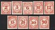 1873 Official Interior set 1c-90c vermilion, plate proofs on card, imperf in issued colour. Superb UN as made, all 4 margins. SG O194-O203(p) cat £1300 as normals. Sc O15P4-O24P4 cat US$100+ (normal cat US$1450). (10) (P) |