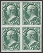 1873 Official Dept of State 15c green, blk of 4, plate proofs on India paper, imperf, in issued colour. Superb UN as made, all 4 margins. SG O242(p) cat £1300 as normals. Sc O64P3 cat US$100+ (normal cat US$1400). Rare multiple. (4) (P) |