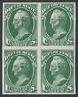 1873 Official Dept of State 24c green, blk of 4, plate proofs on India paper, imperf, in issued colour. Superb UN as made, all 4 margins. SG O243(p) cat £2200 as normals. Sc O65P3 cat US$100+ (normal cat US$2200). Rare multiple. (4) (P) |