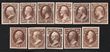 1873 Official Interior set 1c-90c brown, trial colour proofs on thin card, imperf instead of vermilion issued colour, for Atlanta Exhibition. VF UN as made, all 4 margins except 1c which has 3. SG O194-O203(p) cat £1300 as normals. Sc O15TC4c cat US$370 (normal cat US$1450). Only 1 sheet of ea printed. (10) (P) |