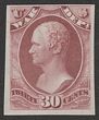 1873 Official War Dept 30c rose, plate proof on India paper, imperf, in issued colour. VF UN as made, 4 margins. SG O270(p) cat £130 as normal. Sc O92P3 cat US$20 (normal cat US$130). |