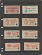 Booklets: 1952-64 selection (8) with 1952 KGVI 3½d brown revised text, 1953 QEII 3½ CofA wmk with waxed interleaving, 3½d no wmk with waxed interleaving. 1957 QEII 4d claret (2) with & w/o wax interleaving. 1959 QEII 4d lake (2). 1964 QEII 5d green QEII edition S1 (no insert pgs). All VF condition. ACSC cat $470. SG cat £415. (8) |